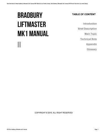 Free PDF BRADBURY LIFTMASTER MK1 MANUAL Audio CD BookBoon
